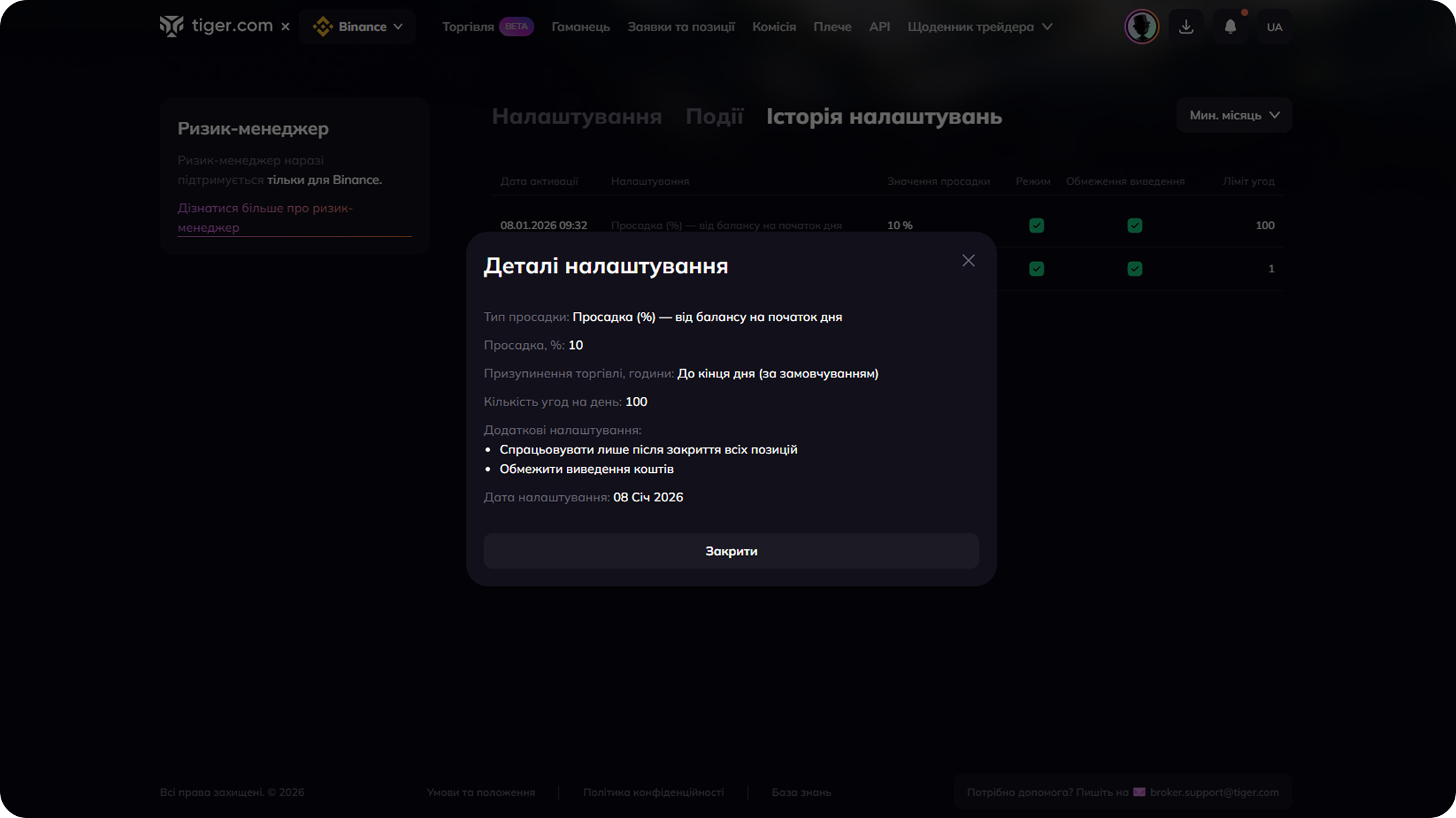 Налаштування ризик-менеджера