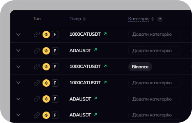 за тією ж формулою, але з окремим відображенням за біржами та типами