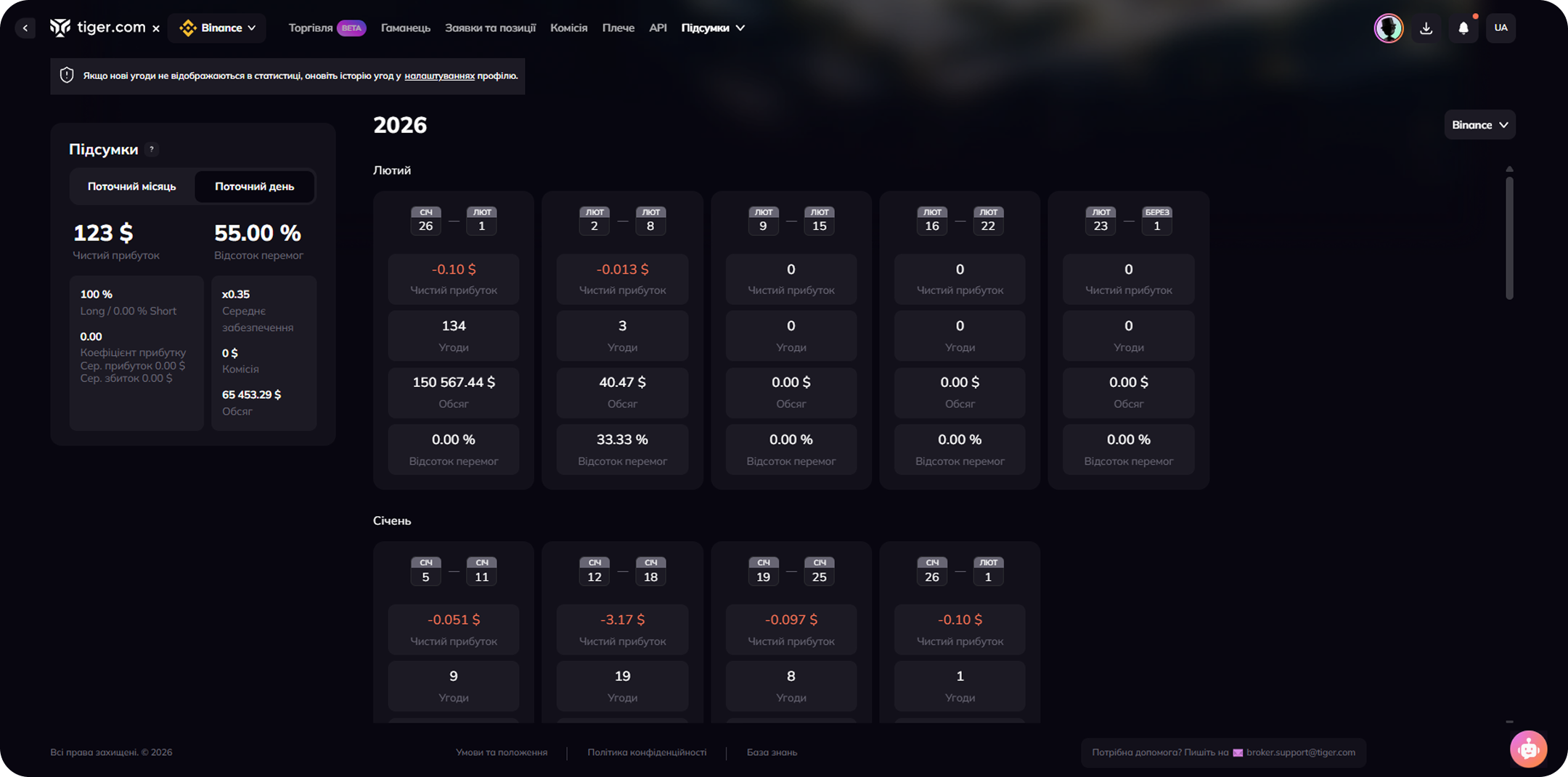 Зручне та наочне відображення торгових результатів за днями.